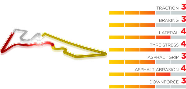 Na toj će poboljšanoj COTA-i vozači moći voziti na C2 hard gumi, C3 mediumu te C4 mješavini koja ima epitet softa. Staza je dugačka oko 5 i pol kilometara, a rekord kruga je postavio već spomenuti Charles Leclerc (1:36.169).