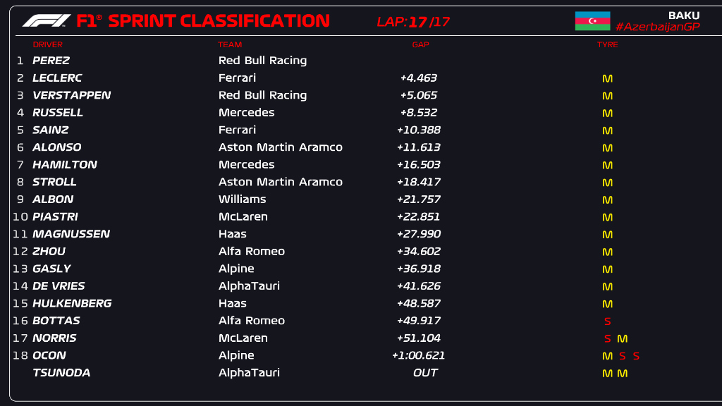 The gap between the two moves to 0.8s #AzerbaijanGP #F1Sprint pic.twitter.com/FkhXWD23Ny